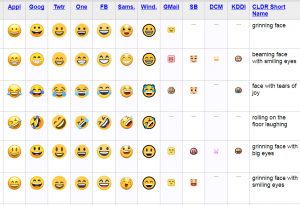 絵文字は日本の携帯電話各社がメール用に搭載してから世界に広まり、今はSNSの普及によりスマホのみならずパソコン上でも一般的に使われるようになりました。しかし携帯電話の絵文字が各社ごとに異なっていたように互換性がなく、また通信での一時の利用のみで、再現するのが難しい面もありました。スマホの時代になってから互換性のための規格化も始まり、Unicodeでかなり整理された状態になっていますが、目に見えるフォントの形状はiOS、Andoroid、Twitterなどシステムが異なると微妙に異なっています。これらの一覧は以下で見ることができます。